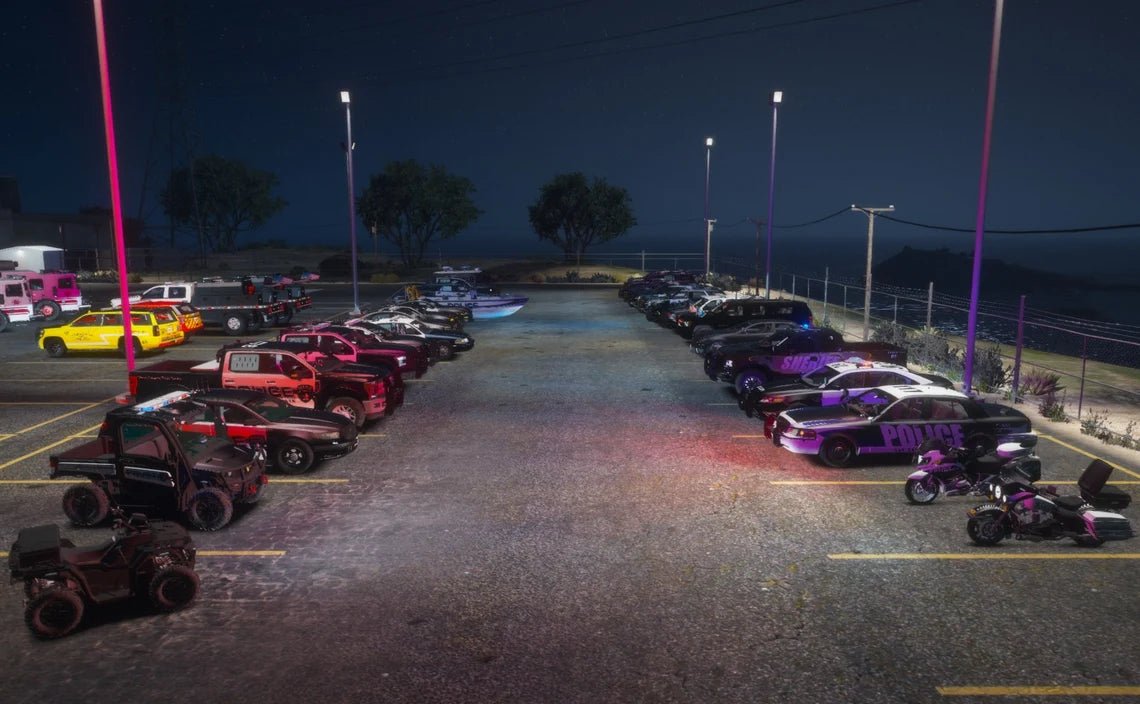 Dieses Paket enthält insgesamt 51 Fahrzeuge – Polizeiautos, Streifenwagen, Rettungswagen, Rettungsfahrzeuge, Feuerwehrautos, Geländefahrzeuge, Quads, Anhänger, einen Hubschrauber und sogar ein Boot! Das Paket enthält für FiveM optimierte Texturen mit einer Größe von unter ~40 MB und Lackierungen in 2K-Qualität. Dieses Paket ist ideal für alle, die einen Server mit einer vollständigen Palette an Einsatzfahrzeugen mit realistischem Handling und optimierten Texturen starten möchten. Zögern Sie nicht! Holen Sie sich Ihr Paket noch heute!