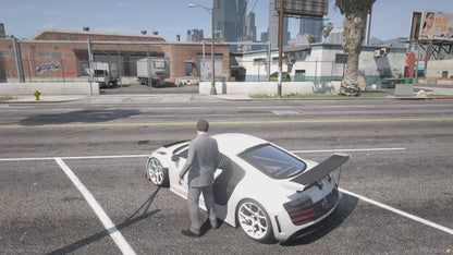FiveM Debadged Audi R8 LMS Animated Car Mod. The mod is FiveM ready drag-and-drop with realistic handling and optimized textures (19.5 MiB). The vehicle is debadged.