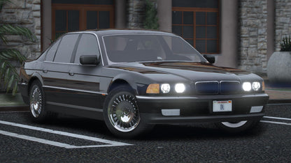 FiveM Debadged BMW E38 750i Car Mod. The mod is FiveM drag-and-drop ready with a realistic handling and optimized textures. The vehicle is debadged.