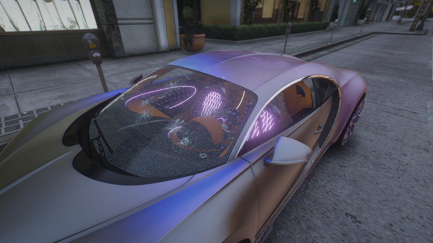 Debadged Bugatti Chiron 2017 Car mod for FiveM. The mod is FiveM drag-and-drop ready and a features realistic handling, optimized textures (Under 16MiB), Forgiato rims and is Galaxy themed.