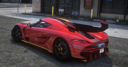 Koenigsegg Jesko 2021 Debadged Car mod for FiveM. The mod is FiveM ready drag-and-drop with realistic handling and optimized textures. The vehicle is debadged and has animated lights.