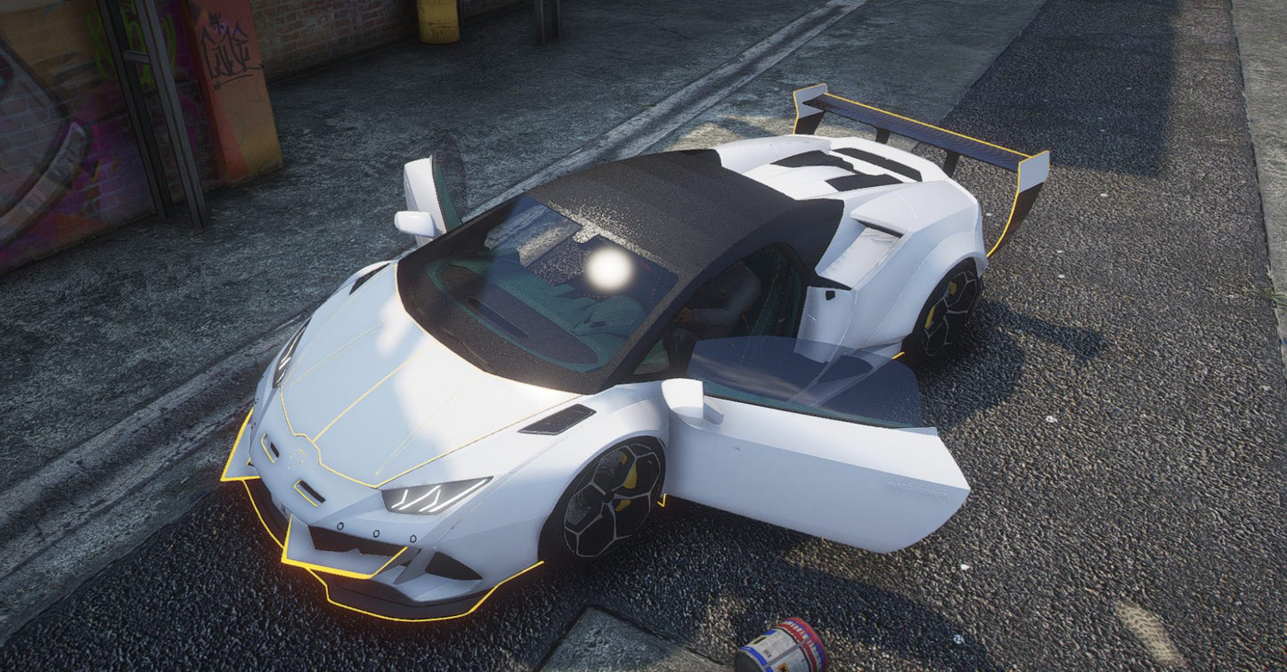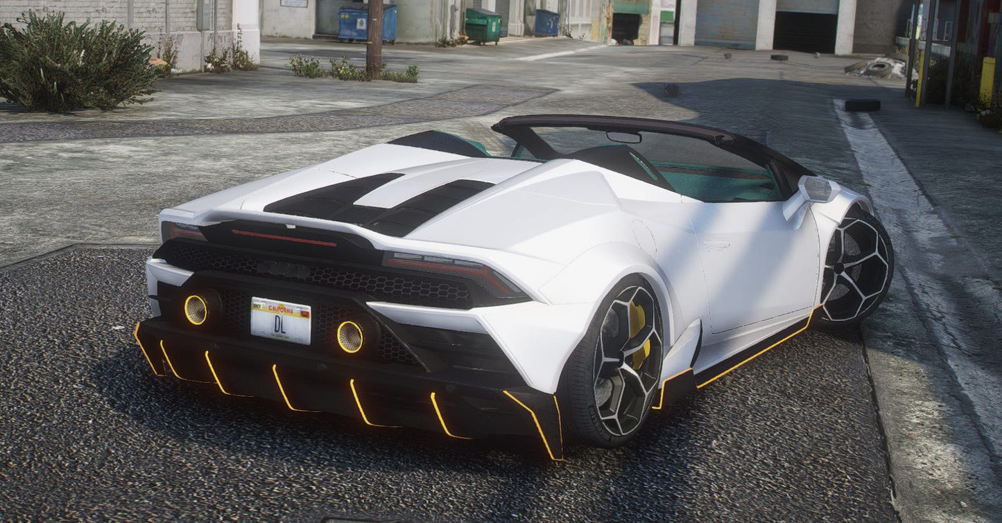 High Quality Lamborghini Huracan Animated Cabrio Widebody Prior Design Debadged Car mod for FiveM. The mod is FiveM ready drag-and-drop with realistic handling and optimized textures. The vehicle is debadged.