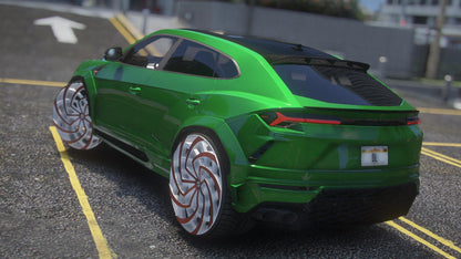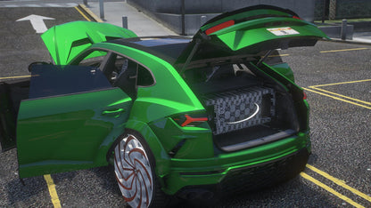 High Quality Debadged Lamborghini Urus Donk Car mod for FiveM. The mod is FiveM ready drag-and-drop with a realistic handling. The vehicle is debadged, is equipped with Rolls-Royce style doors, Donk Rims, Speakers in the trunk and has color changeable DRL's.