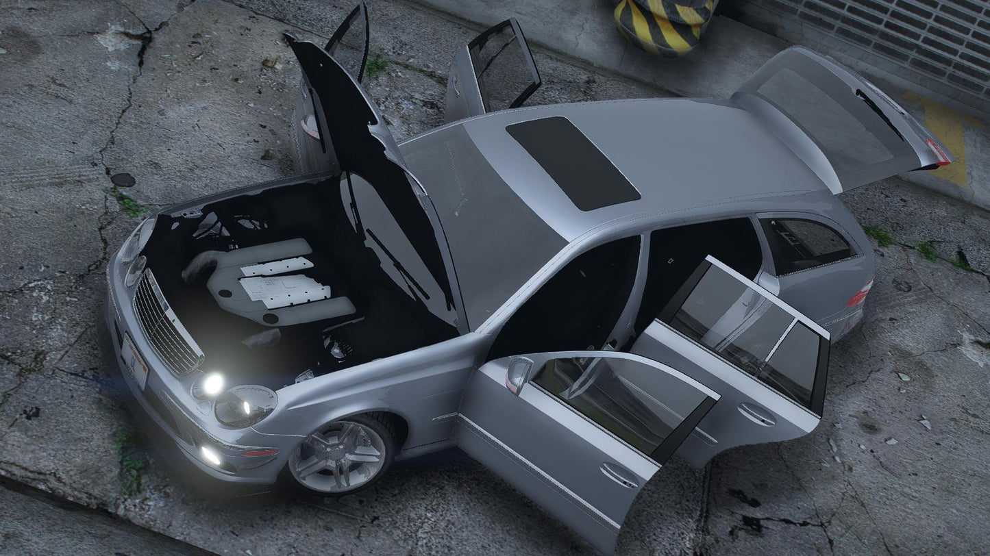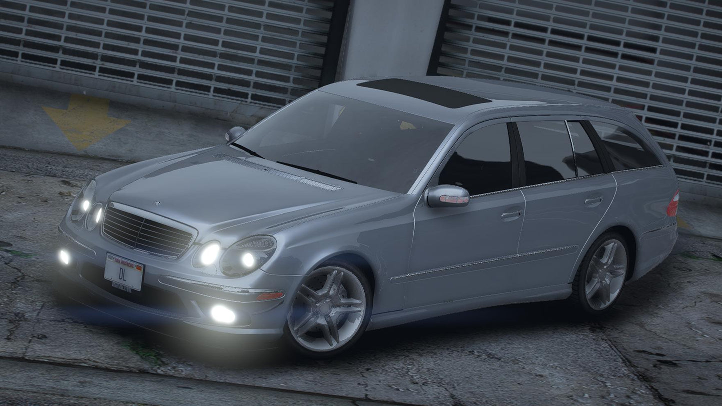 FiveM Debadged Mercedes-Benz E-Class E55 AMG Wagon 2005 car mod with a realistic handling and optimized textures. The mod is FiveM drag-and-drop ready.