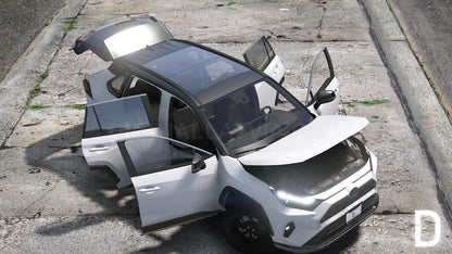 FiveM Toyota RAV 4 Prime XSE Hybrid 2025 Debadged Car Mod. The mod is FiveM drag-and-drop ready with a realistic handling. The vehicle has optimized textures and a tow hitch for trailers.