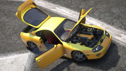 FiveM Debadged Toyota Supra Mk4 RHD Car Mod. The mod is FiveM drag-and-drop ready with a realistic handling and optimized textures. The vehicle has 25 tuning options.